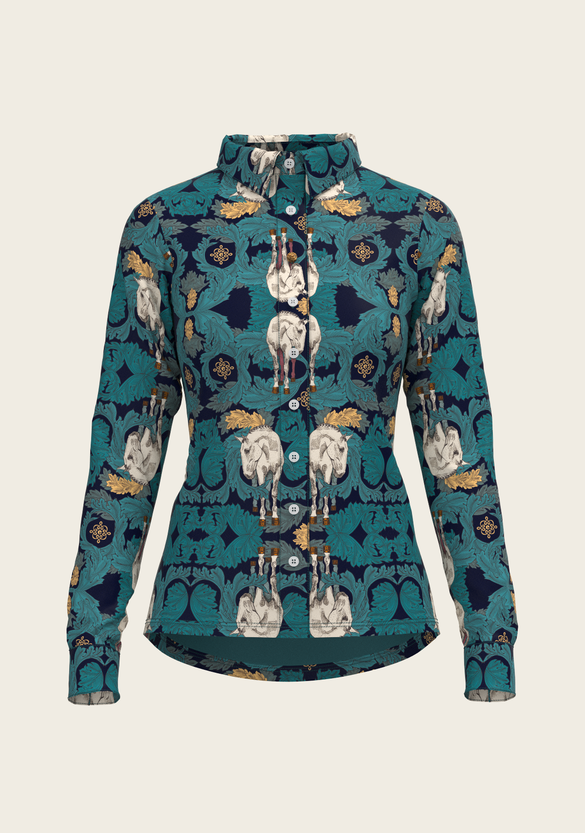 Running Horses Navy Ladies’ Button Sun Shirt