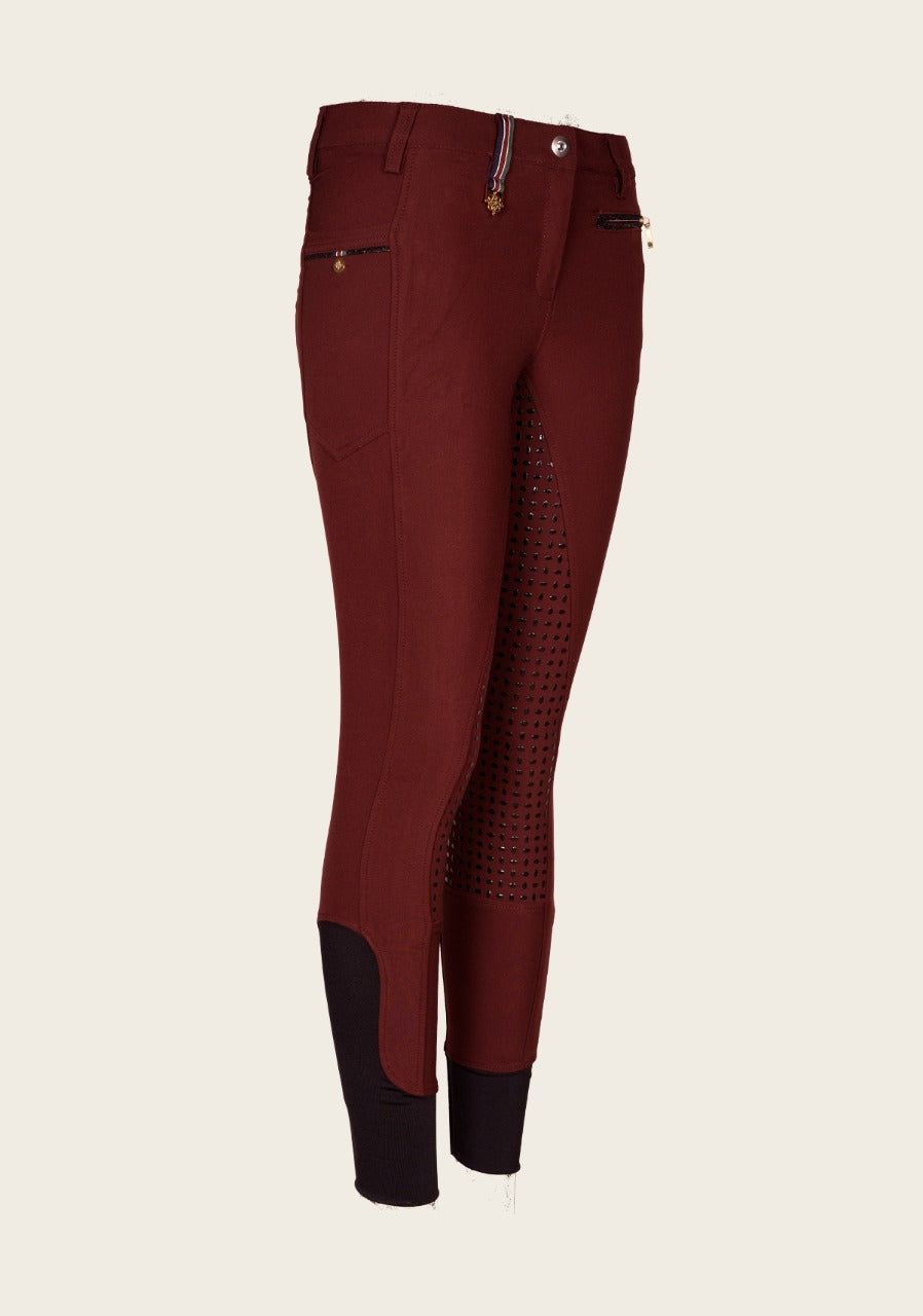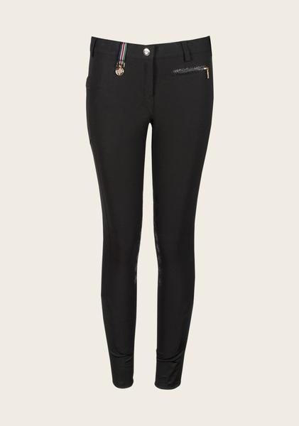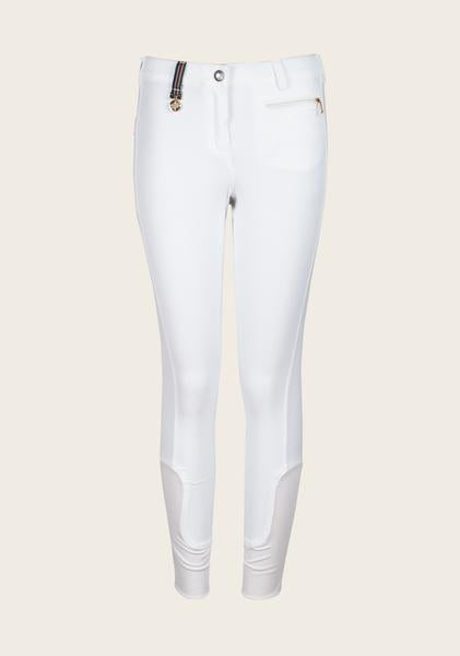 Bamboo fabric gives a great fit and feel to these stylish breeches. Low to Mid rise breech that looks great in the show ring or out. In a wide range of colors with silicone knee grip. In White and Navy in Full Seat.