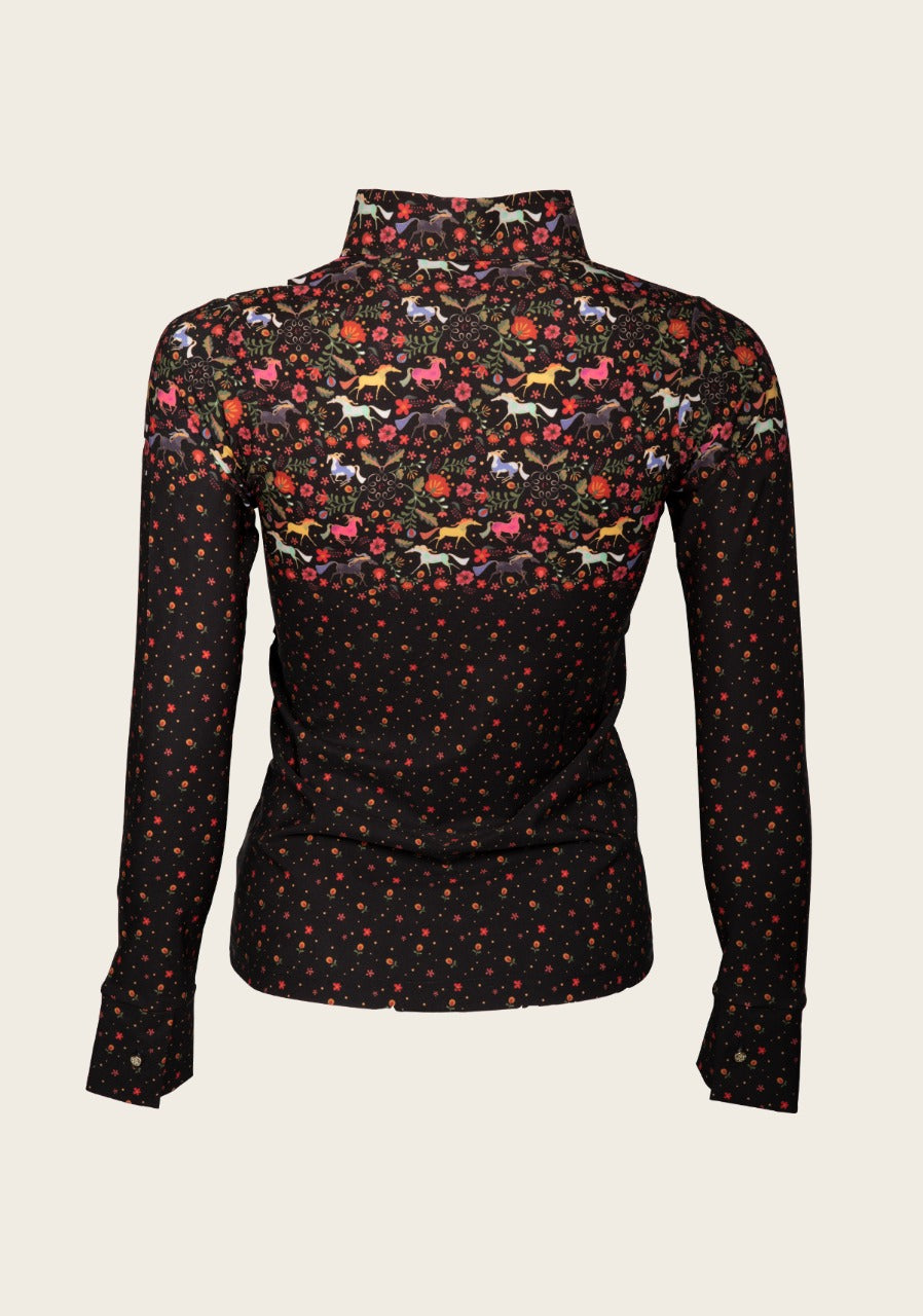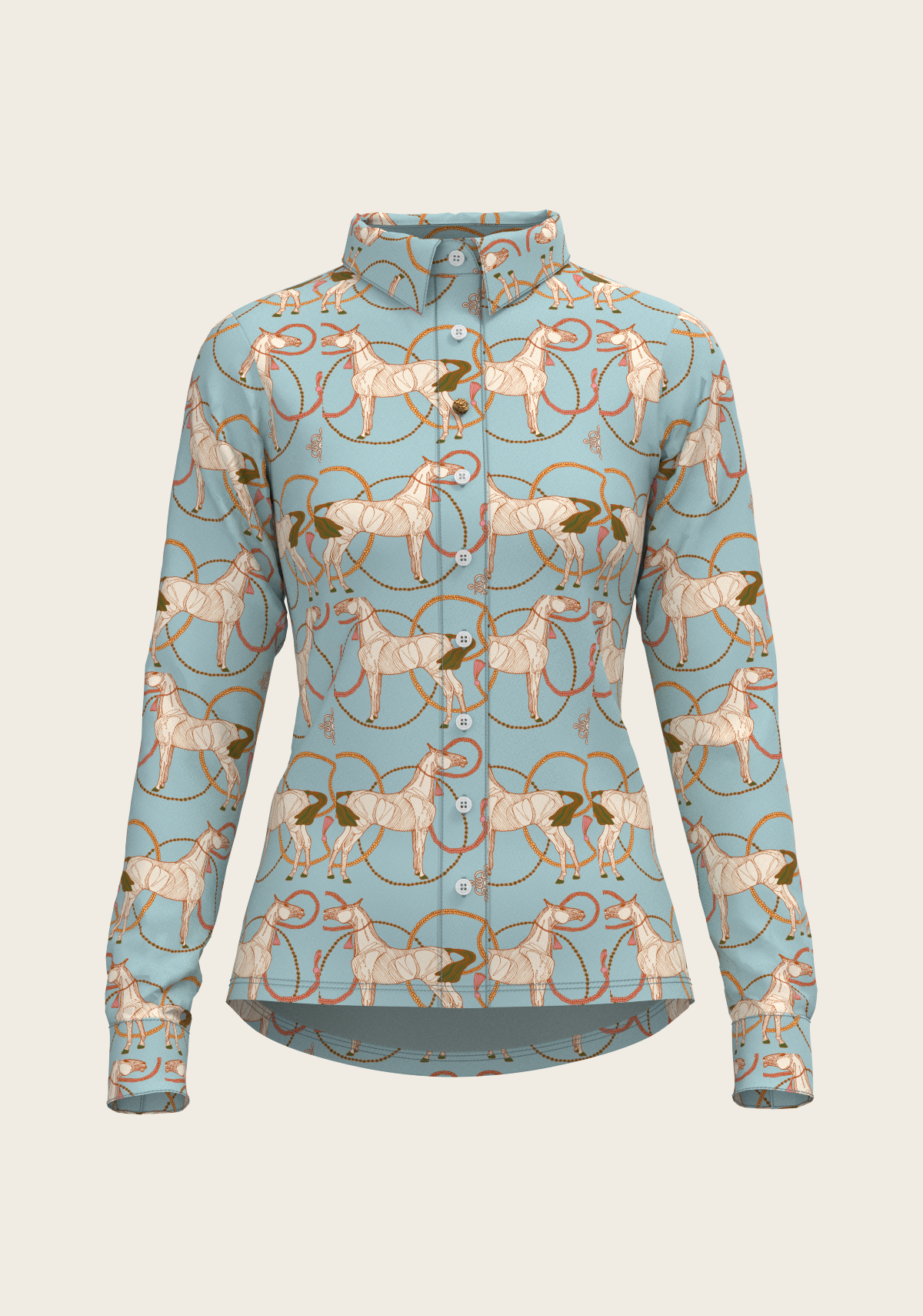 New Causal Ladies' Button shirts with beautiful detailing made of a more structured technical fabric. Elegant hand illustrated patterns add to the casual elegance of these everyday shirts. Perfect for Street to Stable