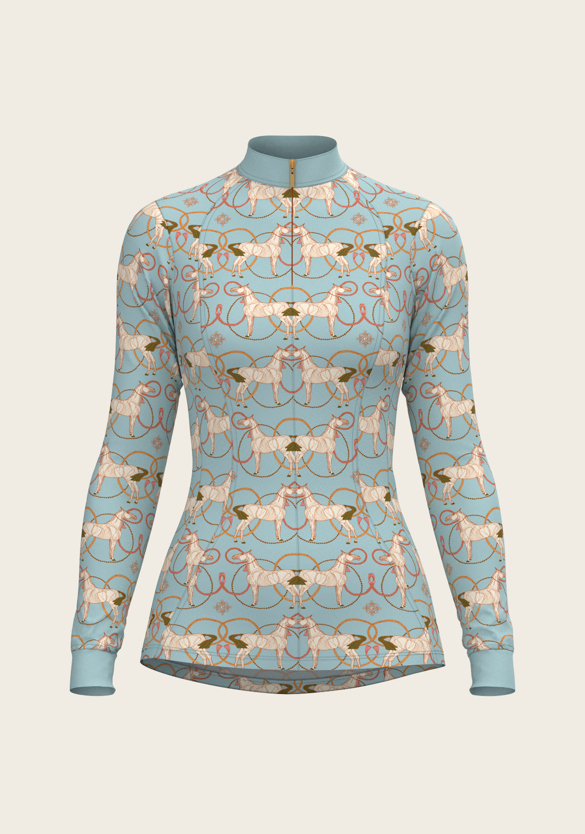 Espoir Roped Horses on Sky Blue Quarter Zip Sun Shirt