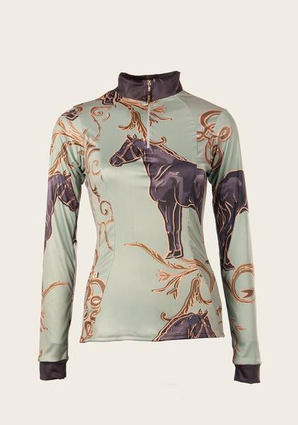 NEW Espoir Cavallo on Green Sport Mesh Quarter Zip Sun Shirt