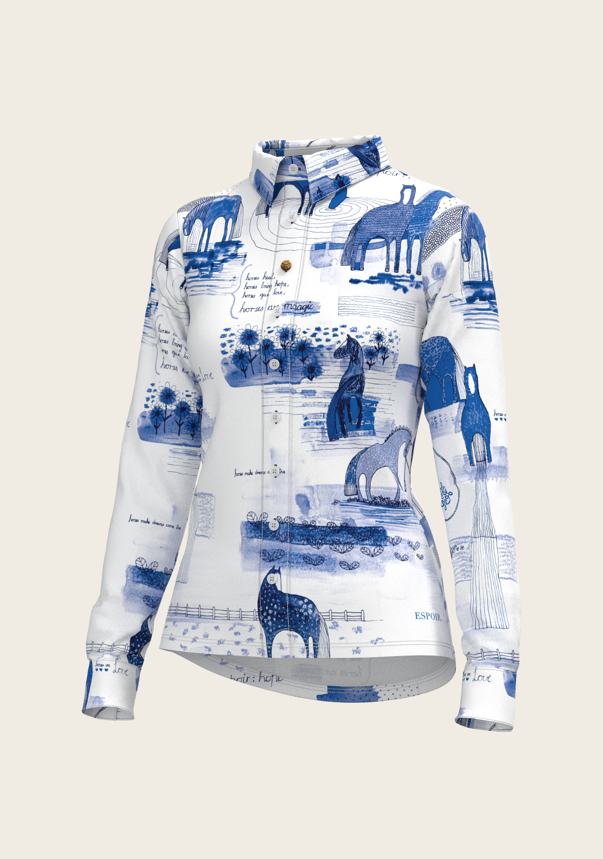 Daydreaming Horses in Blue Ladies Button Shirt $120.00