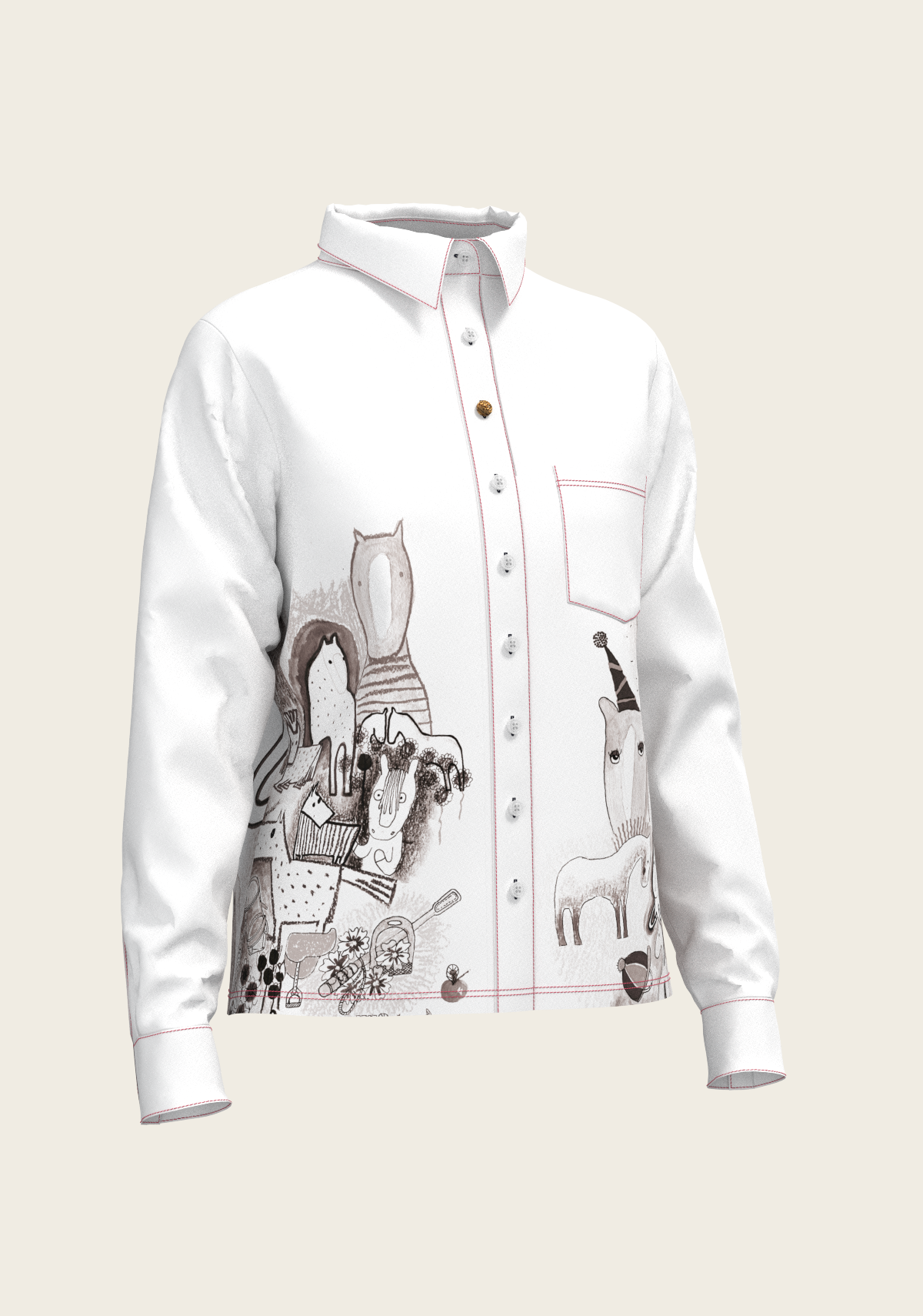 The Horse Fair in Monochrome Loose Fitting Button Shirt $60.00